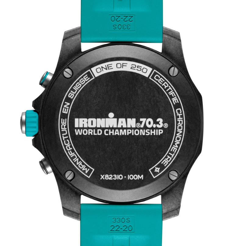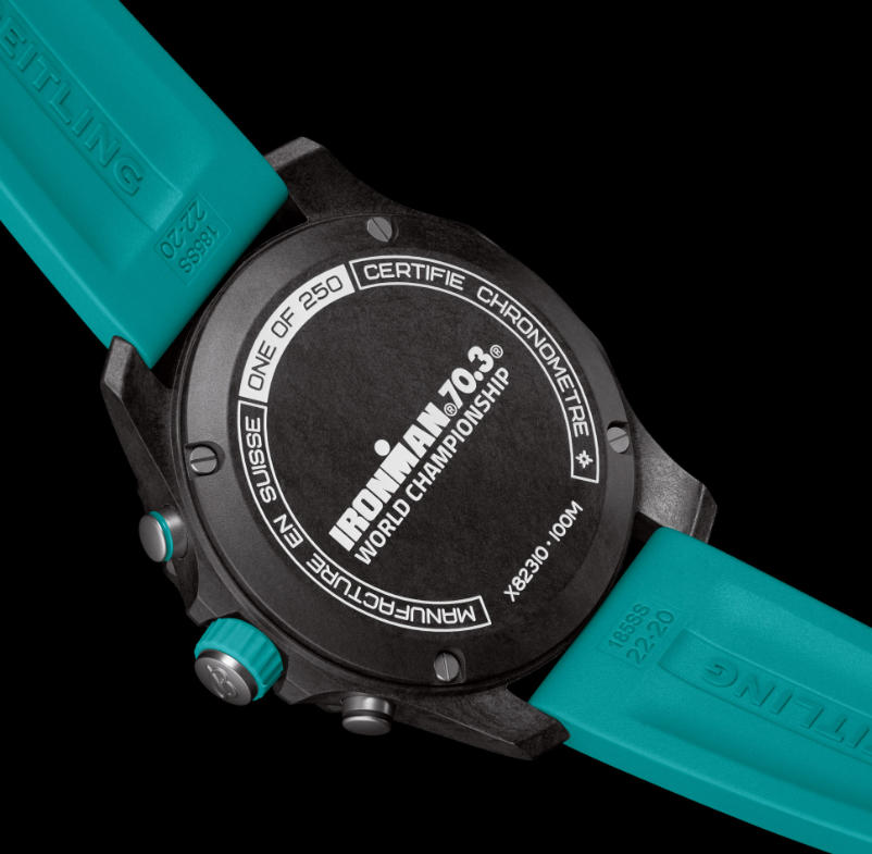 The first of the two new 2023 IRONMAN-themed models is the Breitling Endurance Pro IRONMAN 70.3 World Championship Edition, which is essentially just a new colorway of the original Endurance Pro IRONMAN that we previously reviewed here. Similar to the Endurance Pro IRONMAN Finisher model, the new Endurance Pro IRONMAN 70.3 World Championship Edition features a case made from Breitlight (carbon composite) that measures 44mm in diameter by 12.5mm-thick, with an overall lug-to-lug profile of 52.49mm. Just like the standard production models, the new IRONMAN 70.3 World Championship Edition features a flat sapphire crystal above its dial, a rubberized crown and a pair of pushers on the 3 o’clock side of the case, and a screw-on caseback that helps create a 100 meters of water resistance. These means those top replica Breitling Professional Endurance Pro watches are more than capable of standing up to any swimming stages that might be part of your triathlon.