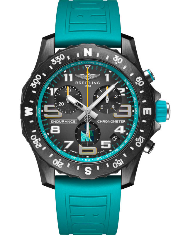 With that in mind, unlike the Endurance Pro IRONMAN Finisher model, the new Breitling Endurance Pro IRONMAN 70.3 World Championship Edition embraces a turquoise colorway with bright yellow accents on the chronograph hands. Additionally, similar to the various Endurance Pro University Edition models, the new Breitling Endurance Pro IRONMAN World Championship watches feature the IRONMAN logo within the sub-dial at the 6 o’clock location. With that in mind, rather than having the “Breitling” name on its 22mm-wide two-piece rubber strap, the new Endurance Pro IRONMAN World Championship models have the “IRONMAN” name in large letters on either side of their straps. Beyond that, the rest of the new 1:1 copy Breitling Professional Endurance Pro IRONMAN World Championship Edition watches remain largely unchanged, with a bidirectional solar compass bezel and a pulsometer scale printed along the contrasting ring that surrounds their anthracite-colored dials.